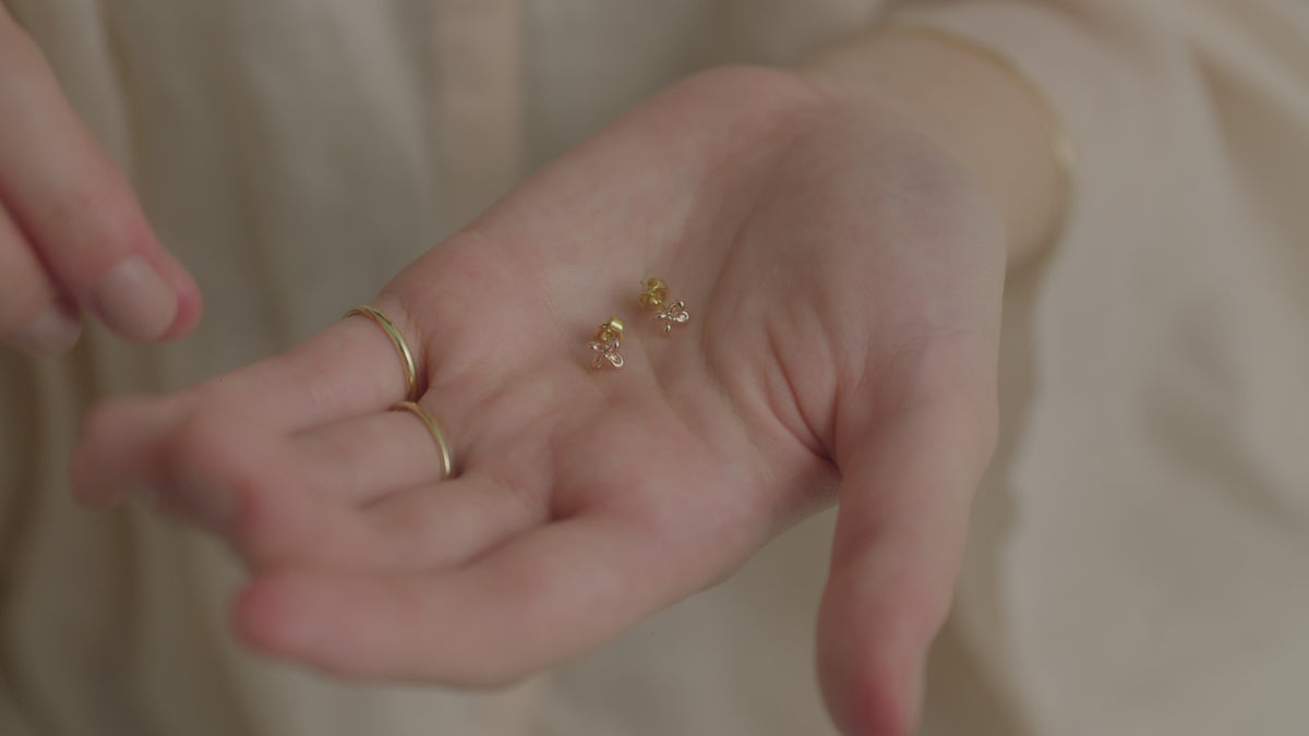 LOKUMIオリジナルクラフトフラワーピアス。デザイナーが手彫りで作り上げた金型を用い鋳造したフラワーはハンドメイドならではのニュアンス感のある雰囲気に。ポストにはK18(18金)を使用しております(刻印入り)。LOKUMIのピアス・イヤリングは全てペア(2個セット)での販売となりますのでご安心下さい。