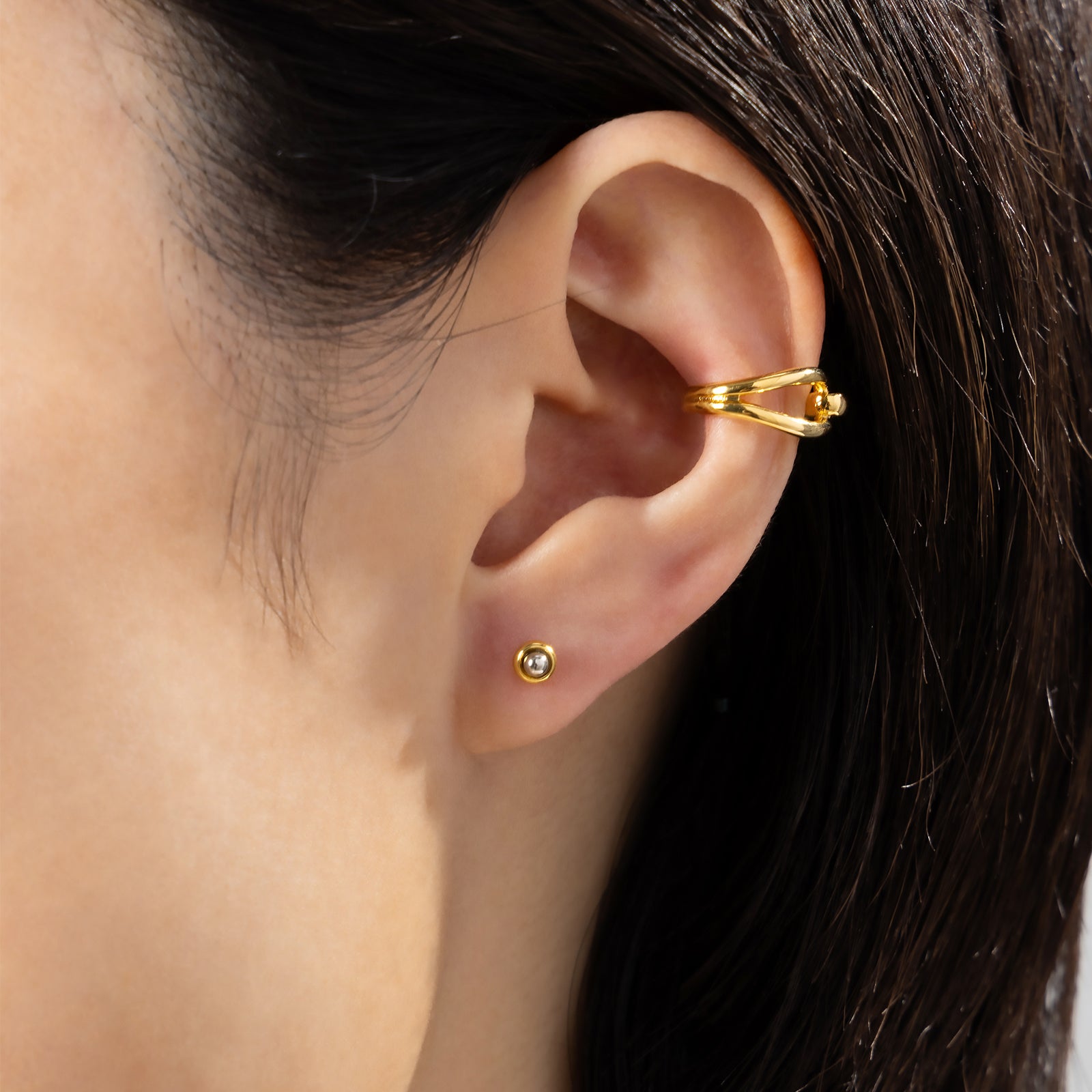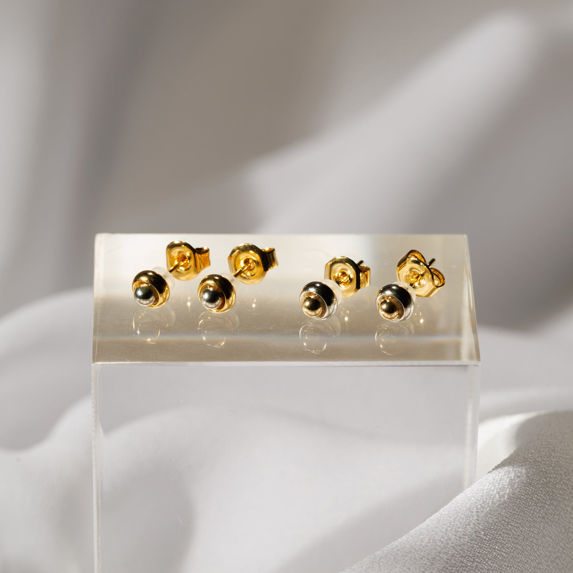 シルバーとK24ゴールドのコンビメッキでシンプルながらもさりげない存在感のあるスタッドピアス。ポストにはK18(18金)を使用しております。LOKUMIのピアス/イヤリングは全てペア(2個セット)での販売となりますのでご安心ください。