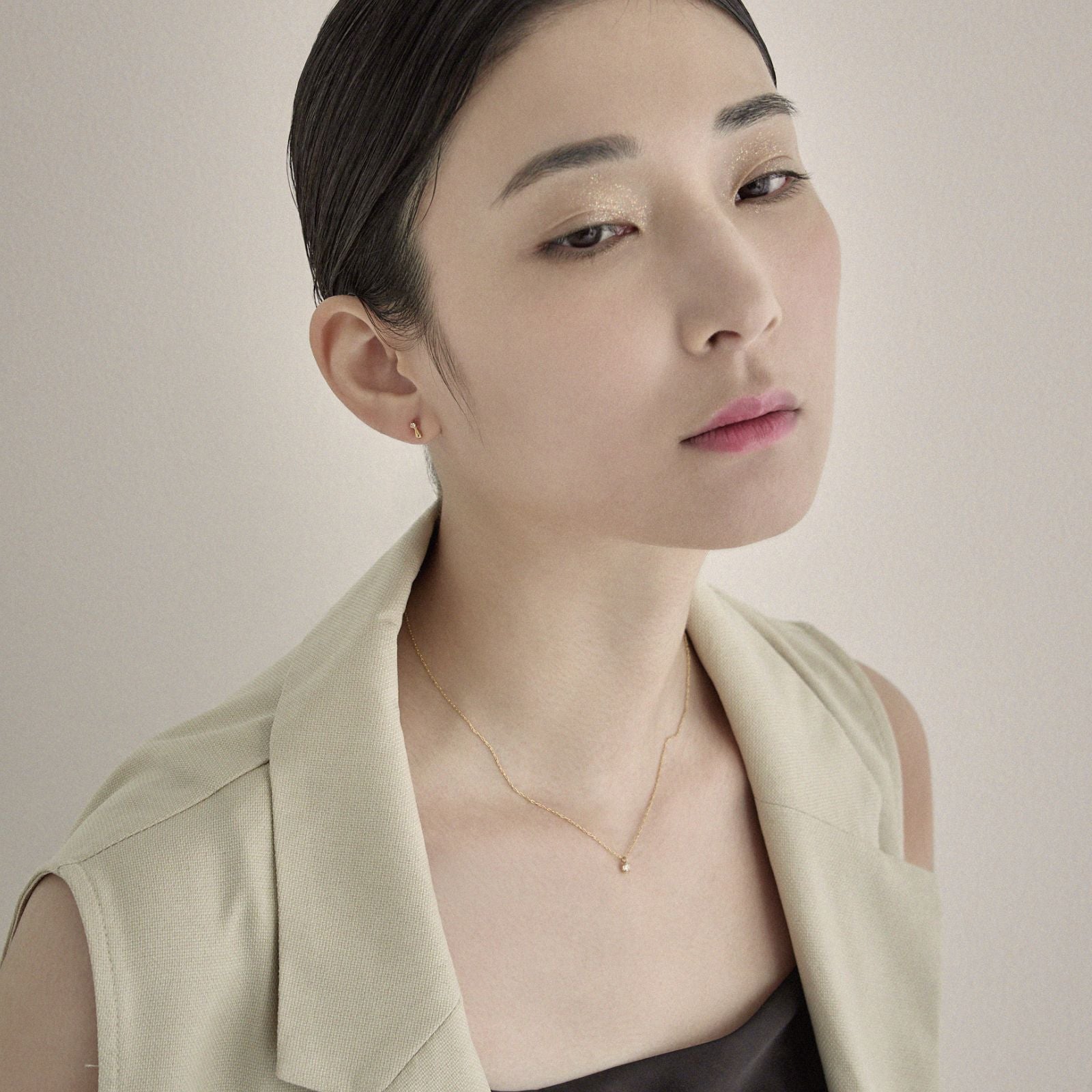 耳元で優雅に煌めく、洗練された「ティア ドロップスイングピアス」艶やかなゴールドの雫型モチーフが光を受けて美しく輝き、ミニマムなクリスタルが凛とした煌めきを放ちます。プチサイズながらも視線を集める上品な輝き。LOKUMIのピアス・イヤリングは全てペア(2個セット)での販売となりますのでご安心ください。