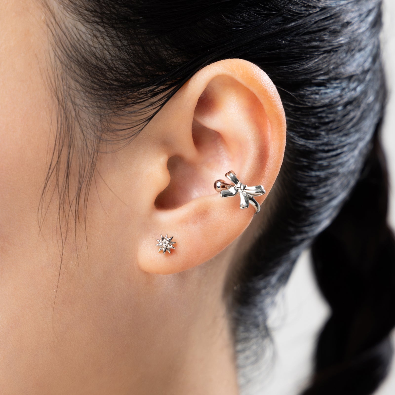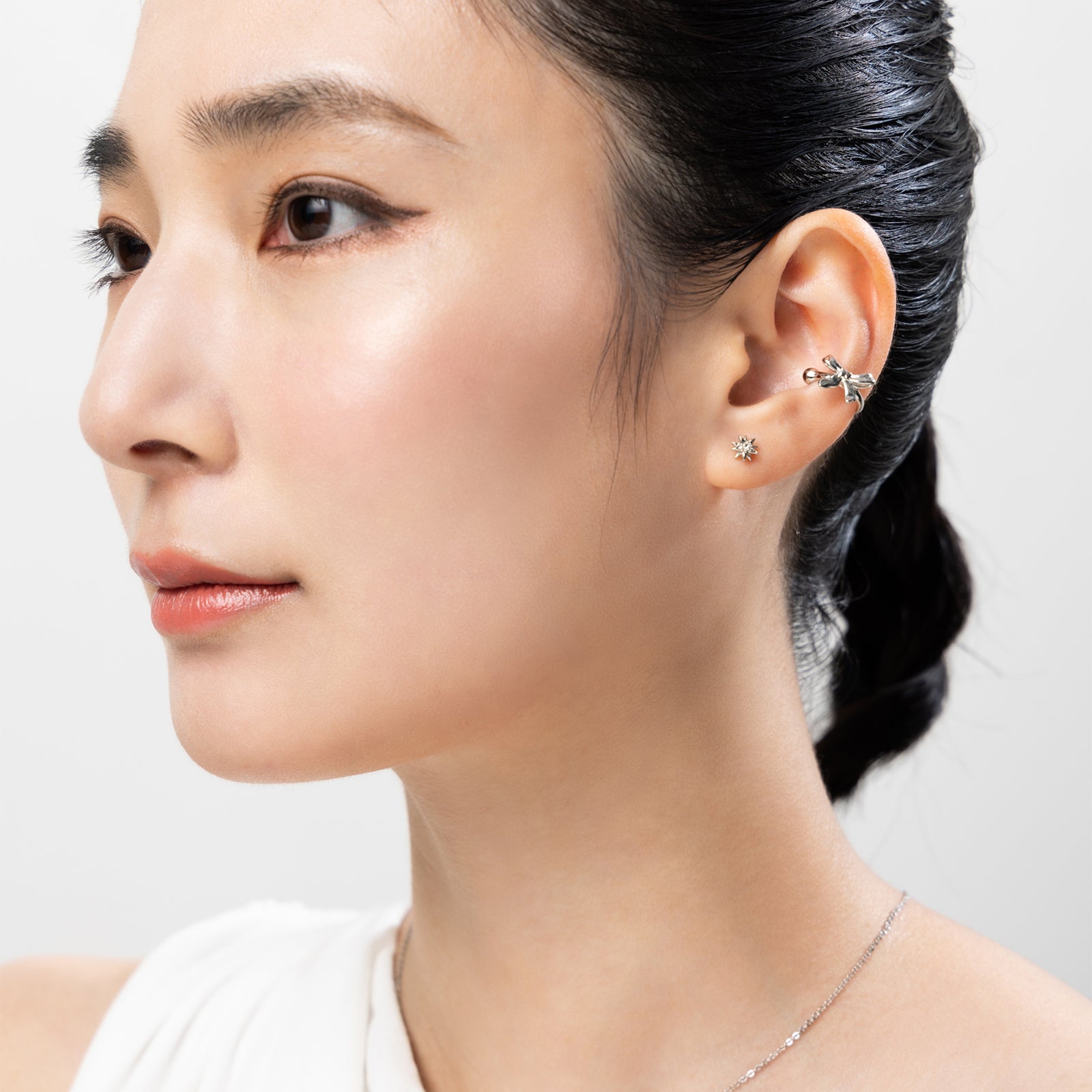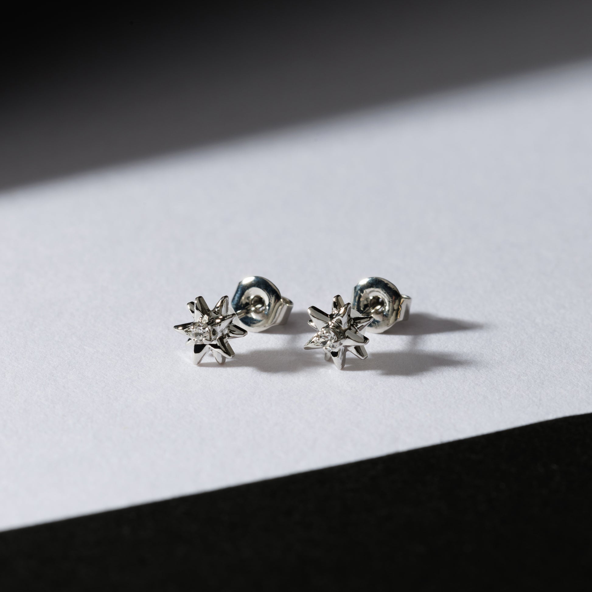 スターモチーフを重ね合わせてスパークルデザインに仕上げたスタッドピアス。ポストにはPt900(プラチナ900)を使用しております。K18(18金)ポストver.も販売中。LOKUMIのピアス・イヤリングは全てペア(2個セット)での販売となりますのでご安心下さい。
