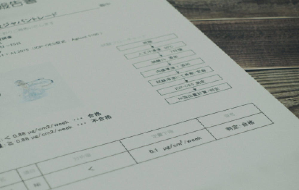 世界的に最も厳しいEUのニッケル溶出量検視規格「EN1811」を満たし、検査証明書を取得しています。
